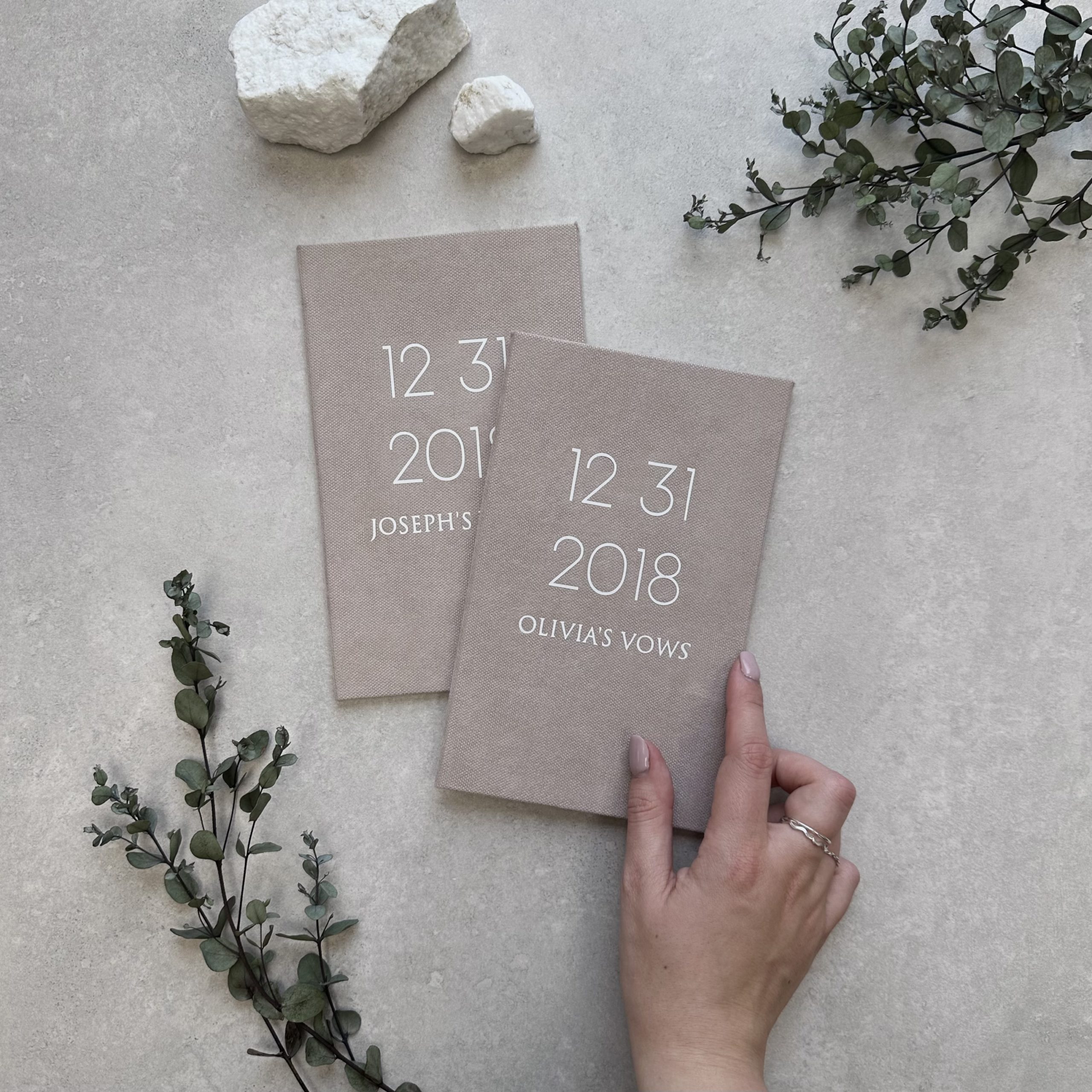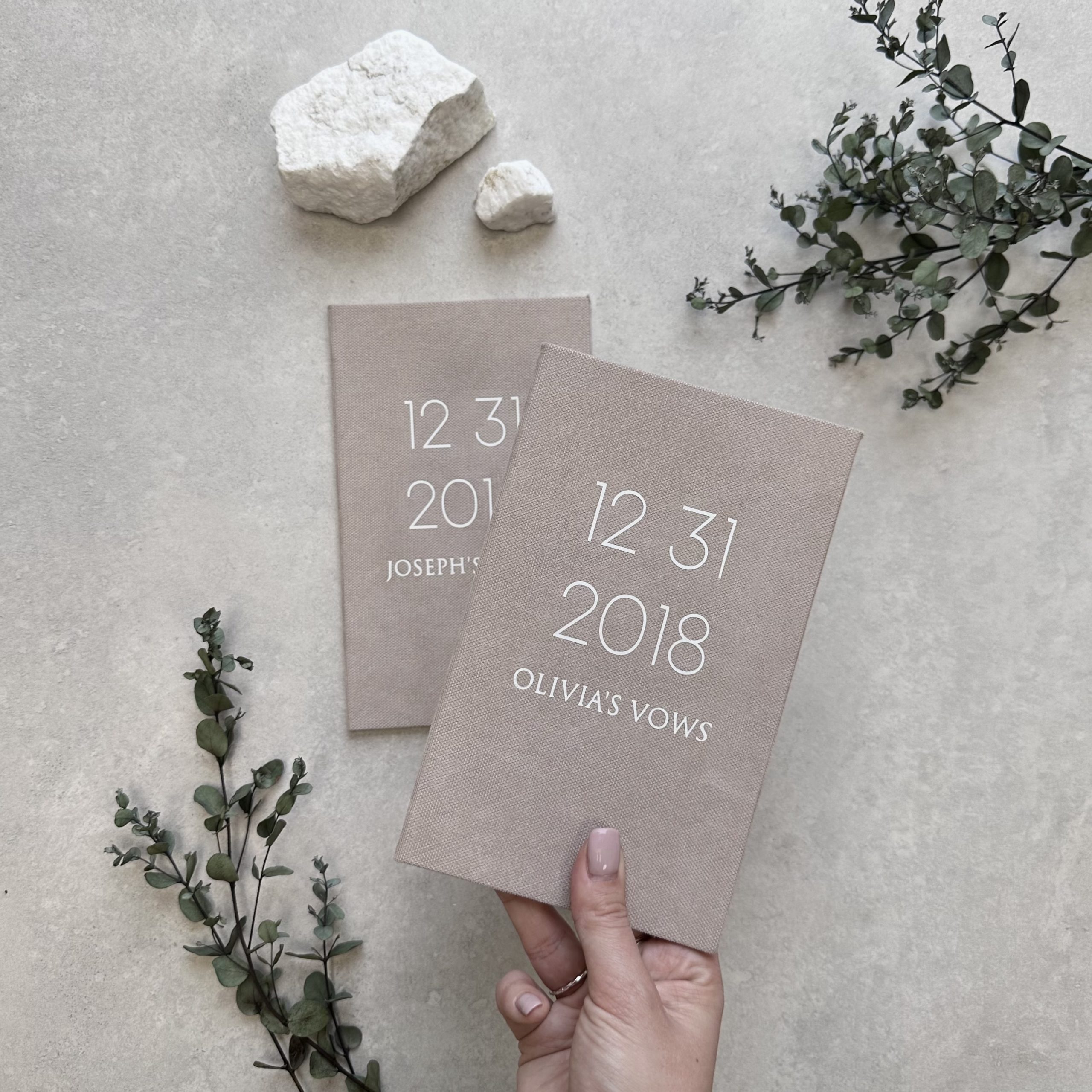 Handmade personalized wedding vow books for couples.
