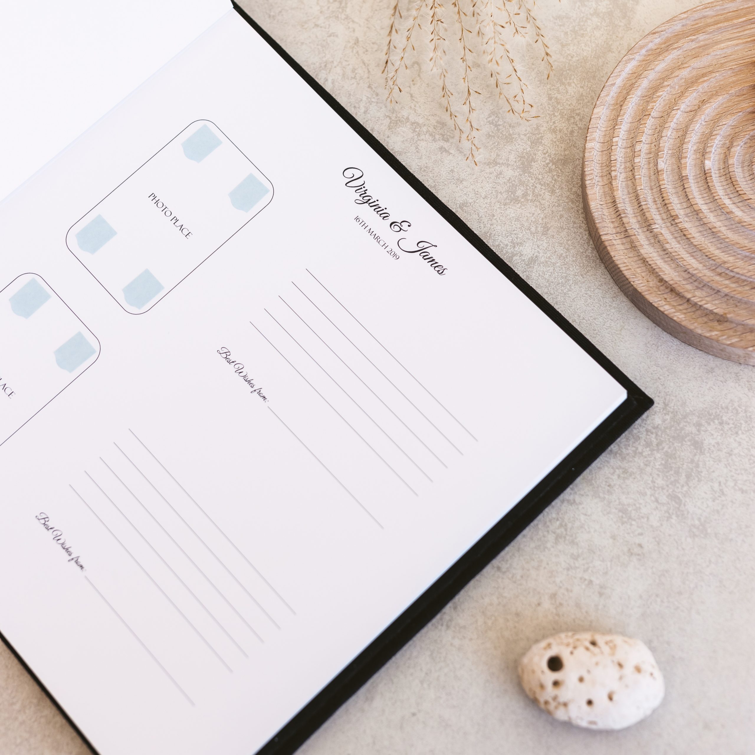 Each page can be personalized with your names, wedding date, or a special message – making your guest book not just a keepsake, but a lasting piece of your love story.