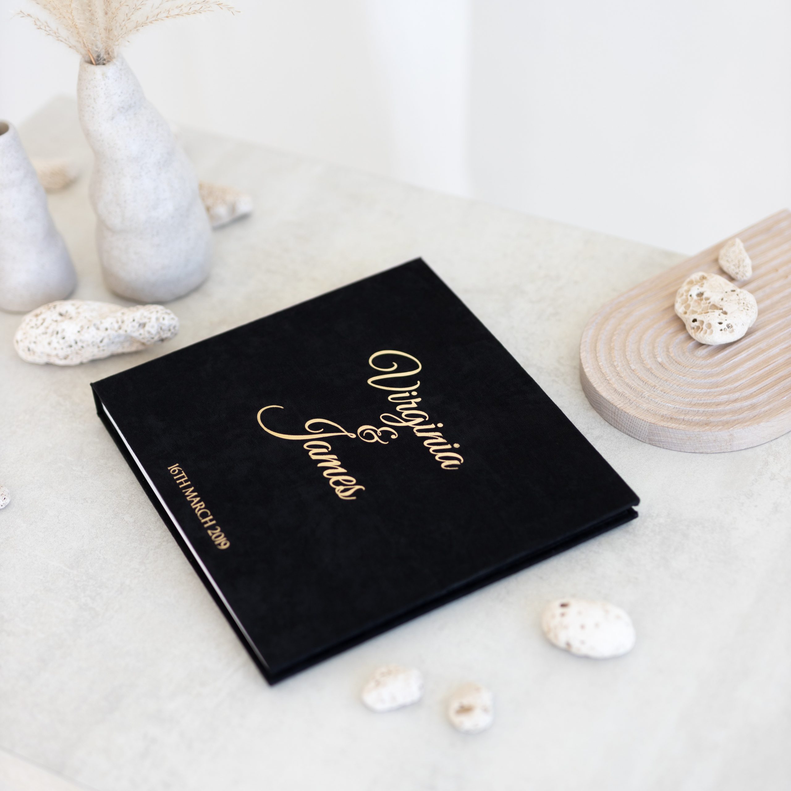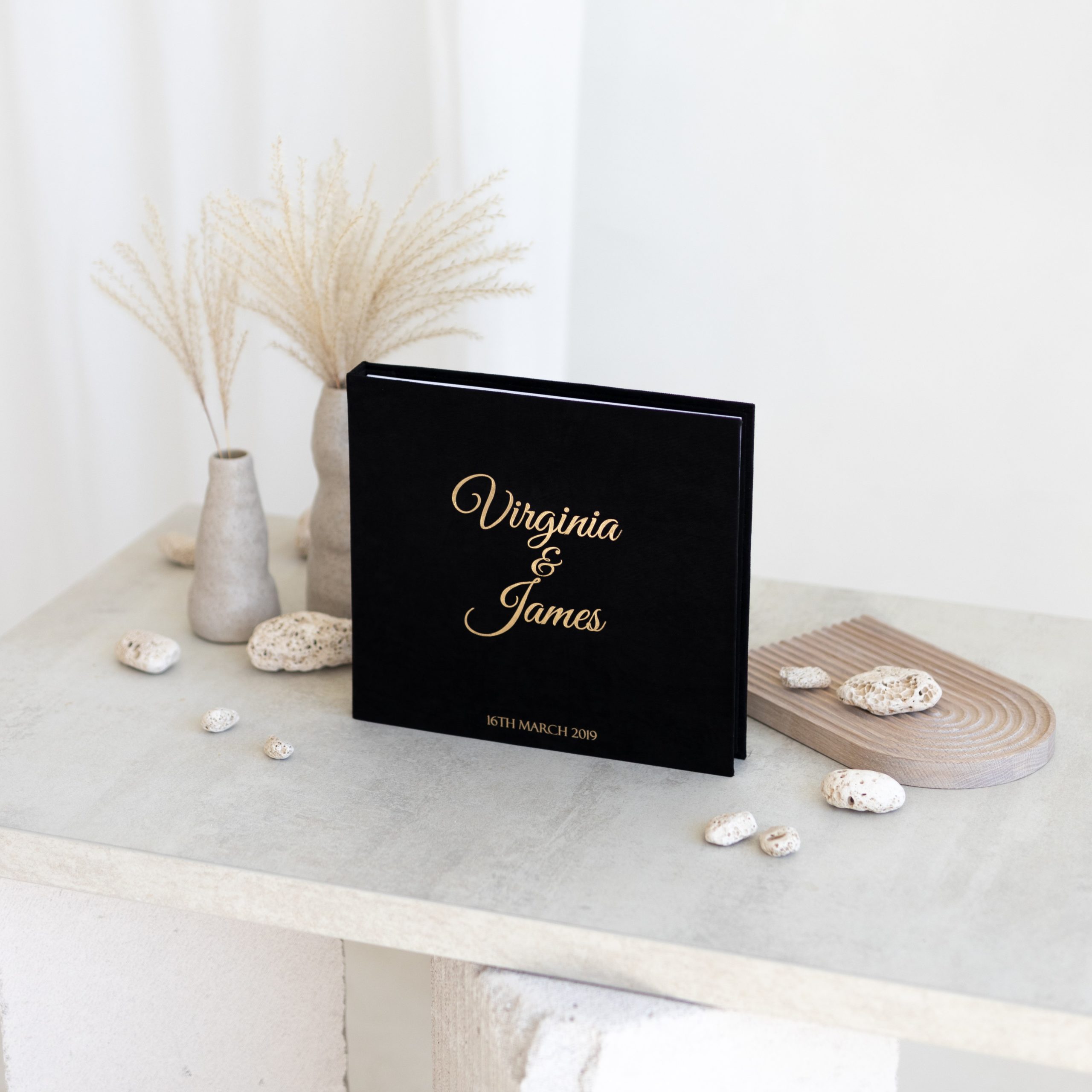 A stylish and handmade wedding guest book for your loved ones to leave their wishes and photos.