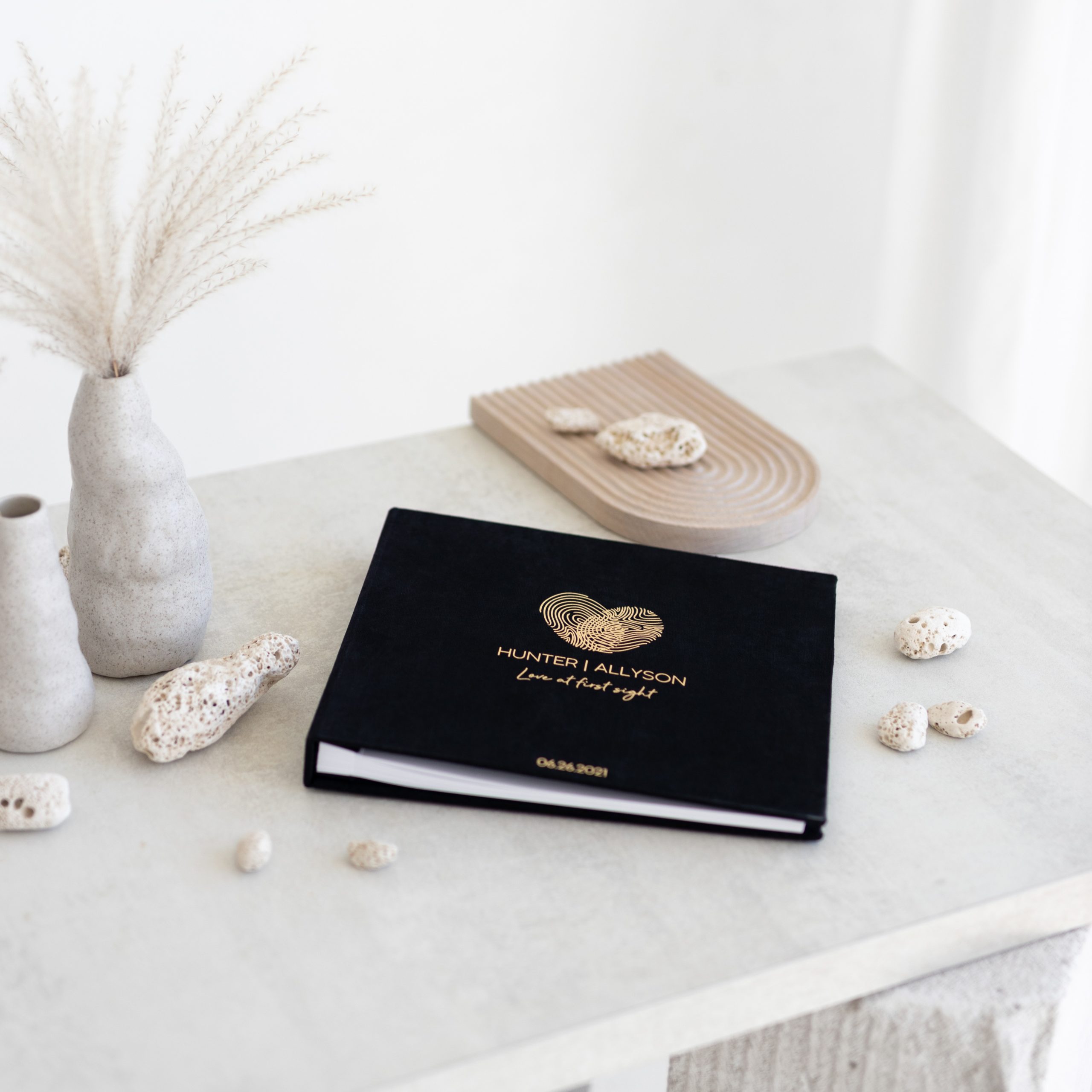 A stylish and handmade wedding guest book for your loved ones to leave their wishes and photos.