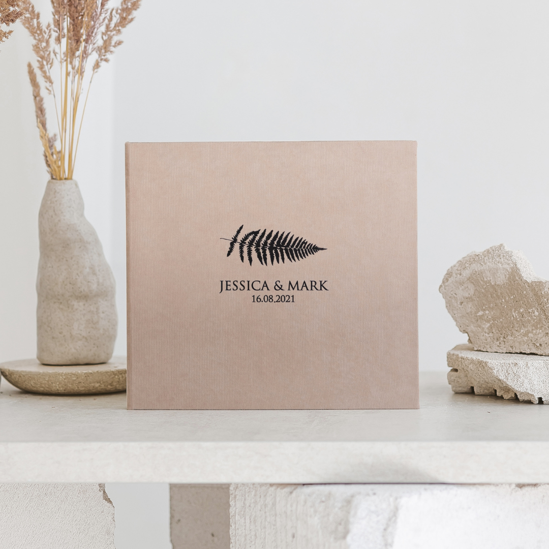 Taupe Personalized Wedding Guest Book - FLORINE.