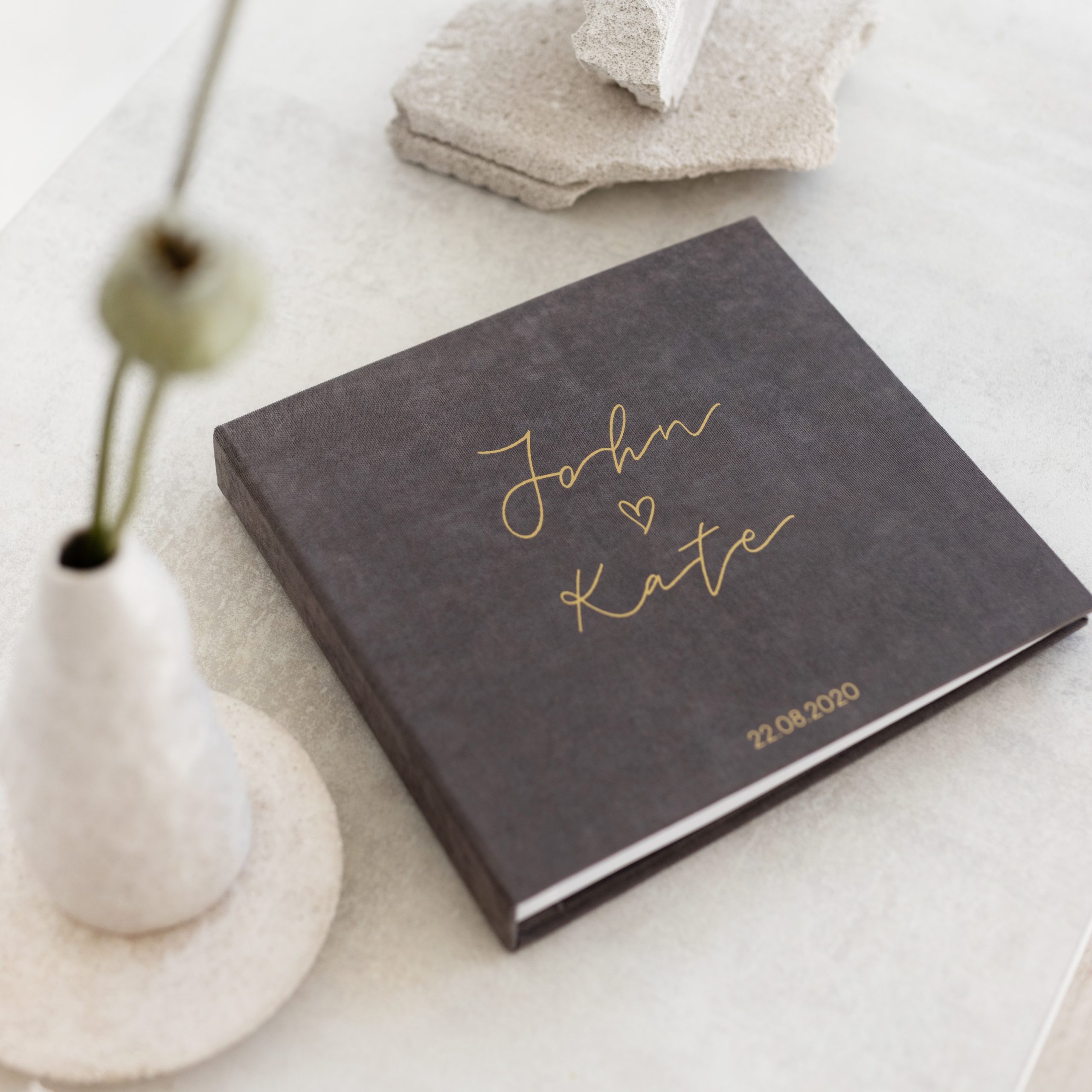 A stylish and handmade wedding guest book for your loved ones to leave their wishes and photos.