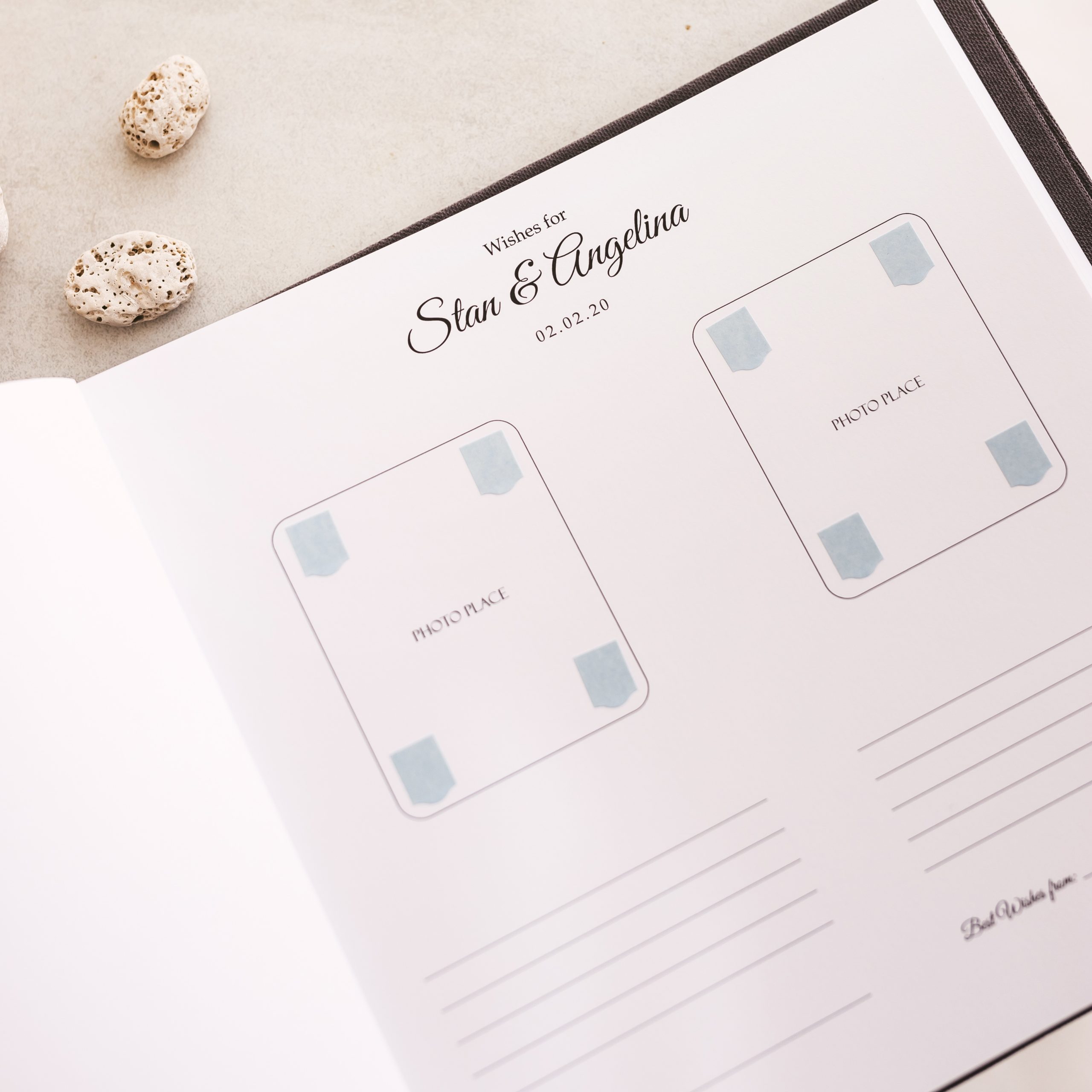 Each page can be personalized with your names, wedding date, or a special message – making your guest book not just a keepsake, but a lasting piece of your love story.