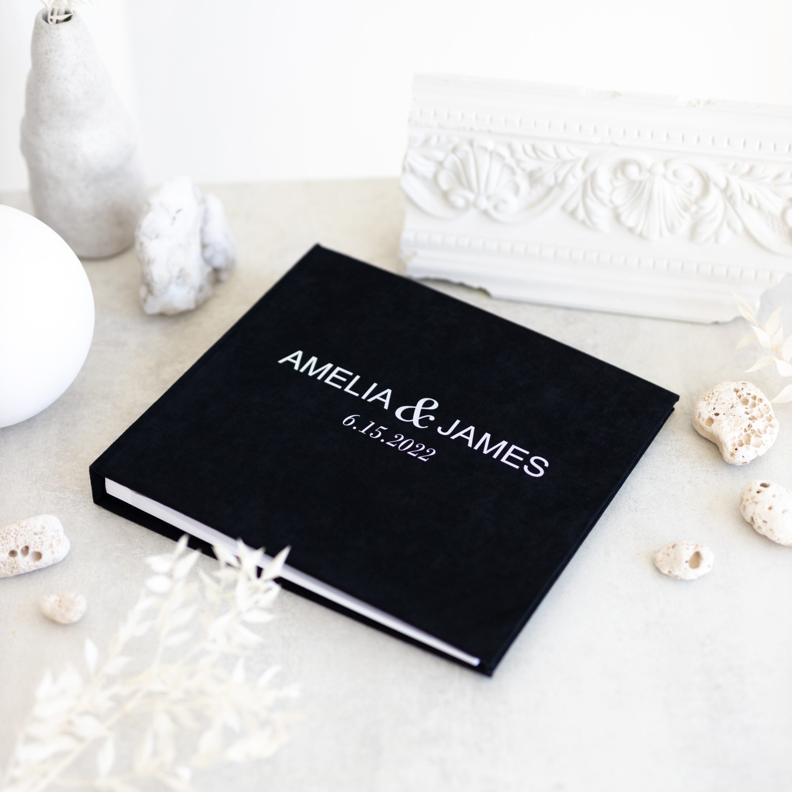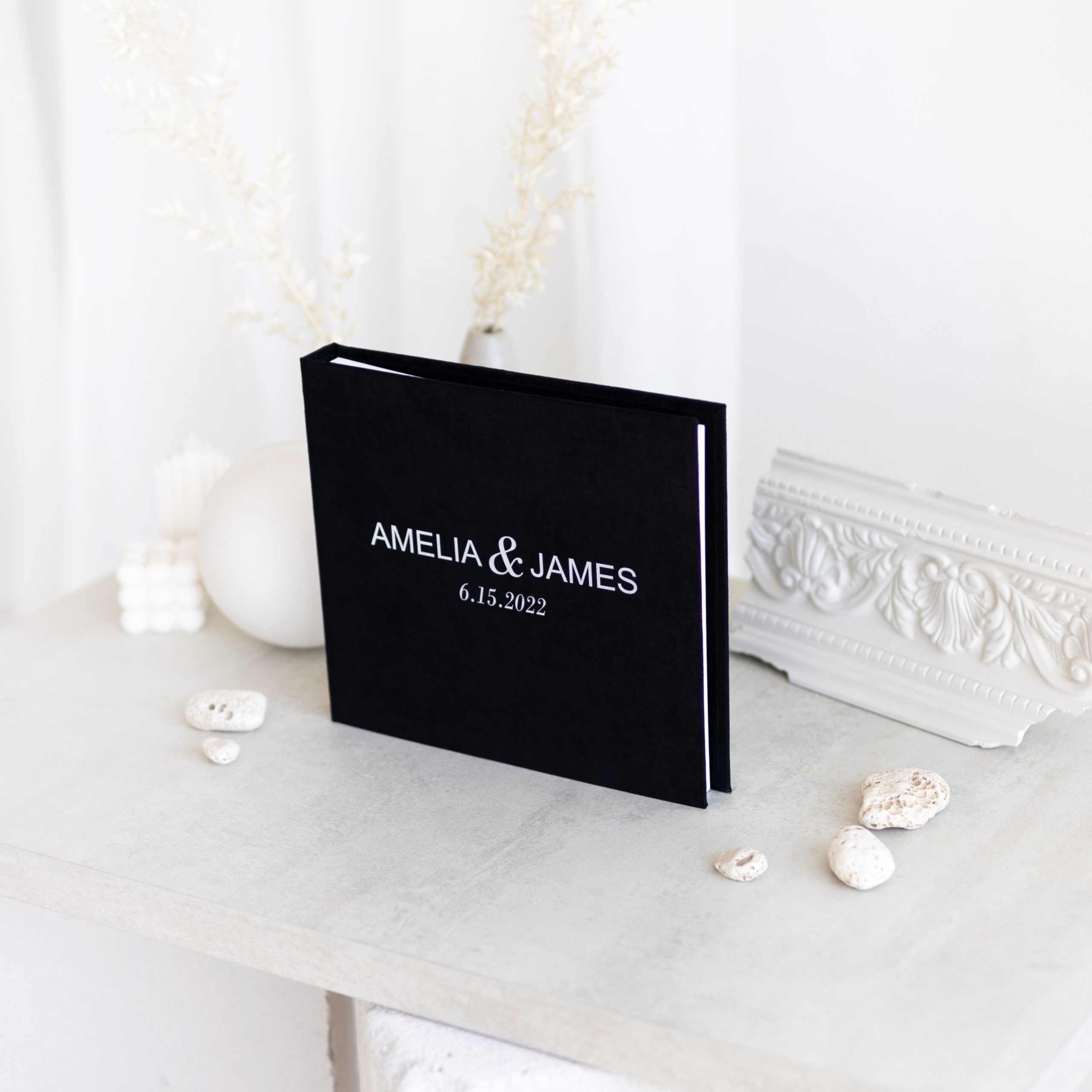 - We create each guest book to order and tailor it to your vision. Choose your color, design, and add names, special dates, a meaningful phrase – or even your logo. Just make sure to send us a vector file by email: info@vestuviuatributika.lt.