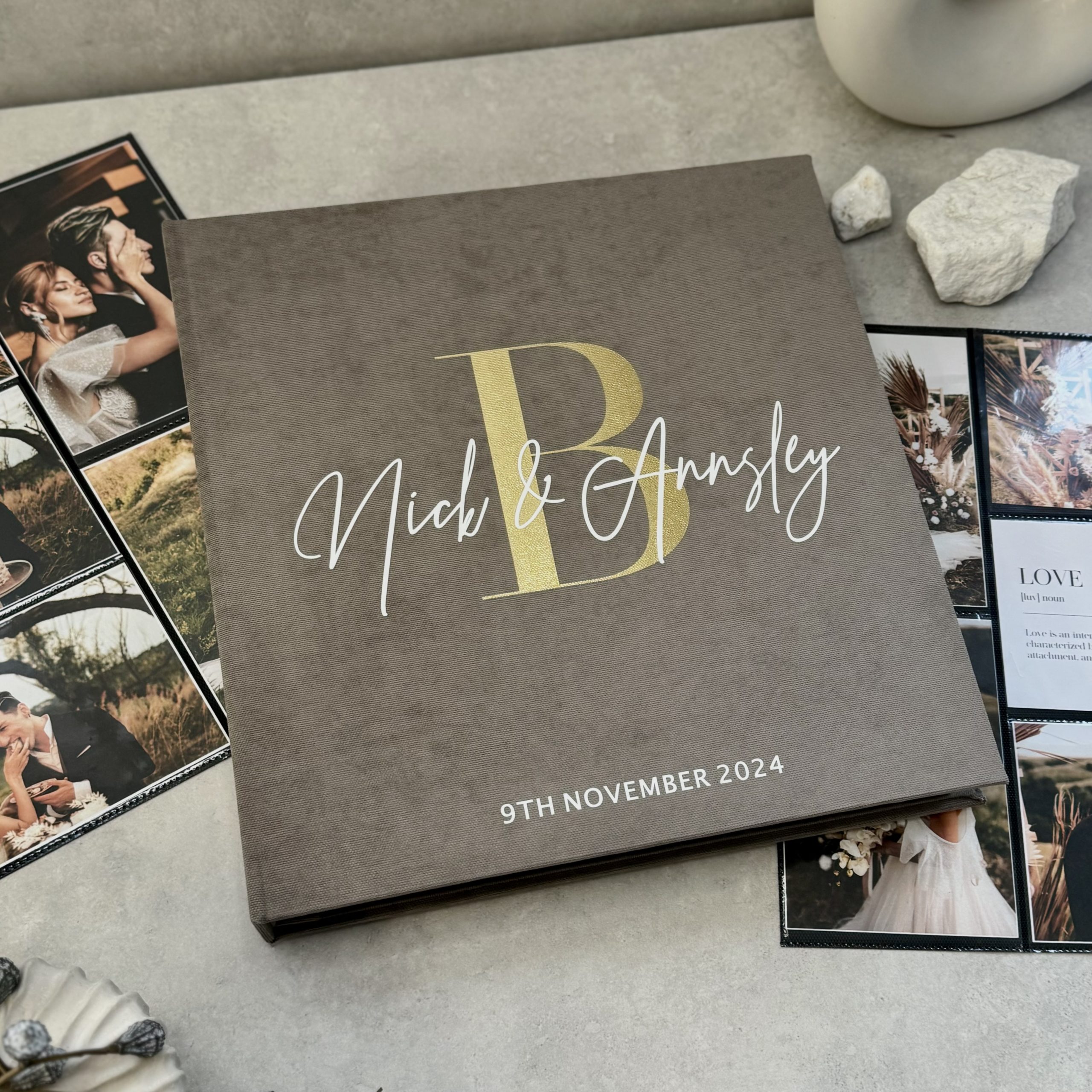 Capture your special moments with our handmade, personalized wedding photo album with sleeves – designed to showcase your photos beautifully and keep them safe for years to come. This custom-made traditional slip in photo album is the perfect choice for displaying your 4″ x 6″/10 x 15 cm photos. Carefully crafted from high-quality materials close attention to detail, it’s a timeless keepsake for weddings, anniversaries, and family milestones.