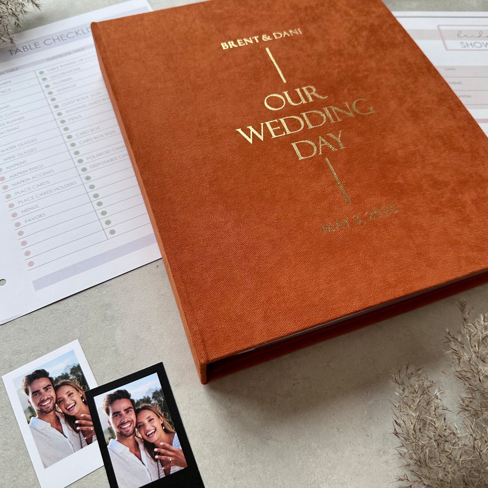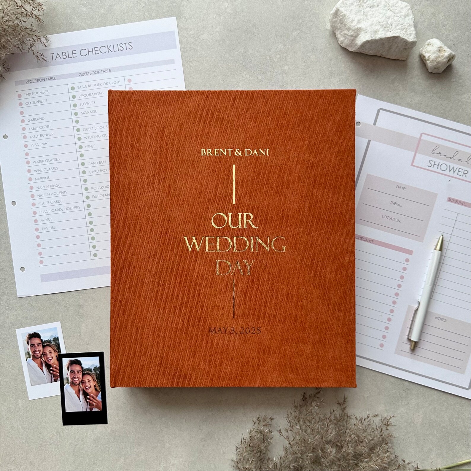 Stay organized, stress-free, and inspired with this beautifully designed personalized wedding planner. Whether you’re planning a grand celebration or an intimate ceremony, this wedding planner book is your go-to guide for managing every detail – from your dream vision to the big “I do.”